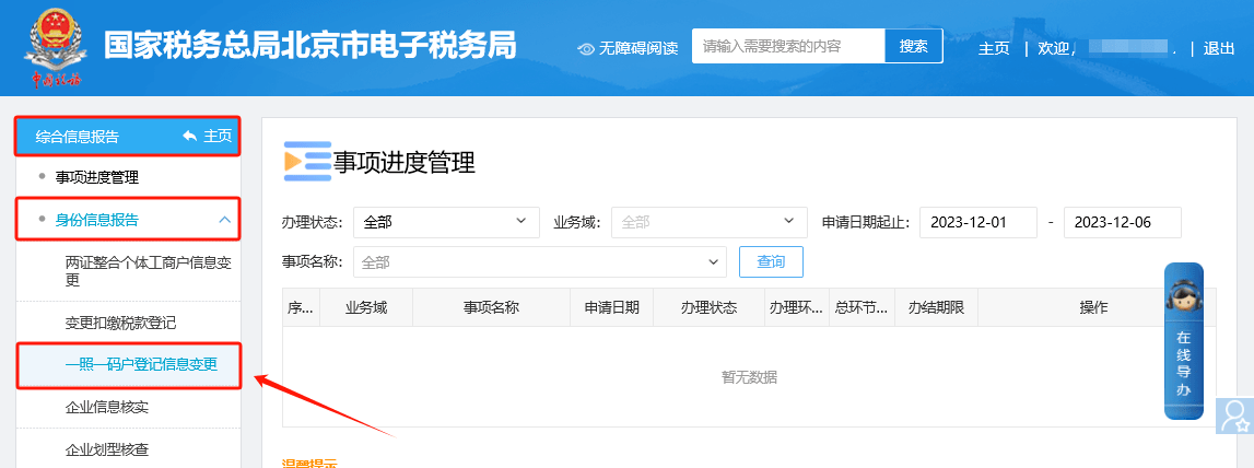 二、綜合信息報告—身份信息報告—一照一碼戶信息變更。